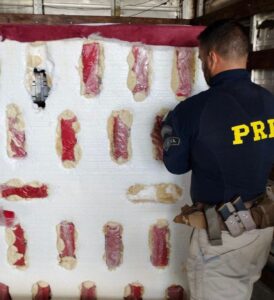 De acordo com a PRF, uma equipe fiscalizava a rodovia, quando abordou um caminhão que trafegava na altura de Rio Bonito. Durante a ação, o motorista informou que estava transportando colchões dentro do baú, mas que não tinha a chave para abrir o compartimento.