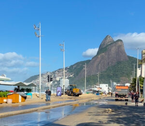 Na manhã desta quarta-feira (30), a Avenida Delfim Moreira foi totalmente interditada nos dois sentidos, entre as avenidas Bartolomeu Mitre e Henrique Dumont, por conta da grande quantidade de areia trazida pelo mar. Segundo a Prefeitura, mais de 100 toneladas de areia foram retiradas com o uso de 28 caminhões. A operação de limpeza mobilizou 100 garis da Comlurb, com apoio de quatro pás mecânicas, duas pás compactas e quatro caminhões basculantes. Toda a areia recolhida foi devolvida à praia.