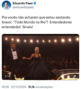 Após a coletiva, o prefeito aumentou ainda mais a curiosidade do público ao postar um vídeo da cantora Adele cantando “Shallow” em sua conta oficial no X (antigo Twitter). Embora não tenha confirmado a presença da artista britânica, o gesto gerou especulações nas redes sociais, com fãs questionando se ela será a próxima grande atração a pisar nos palcos cariocas.