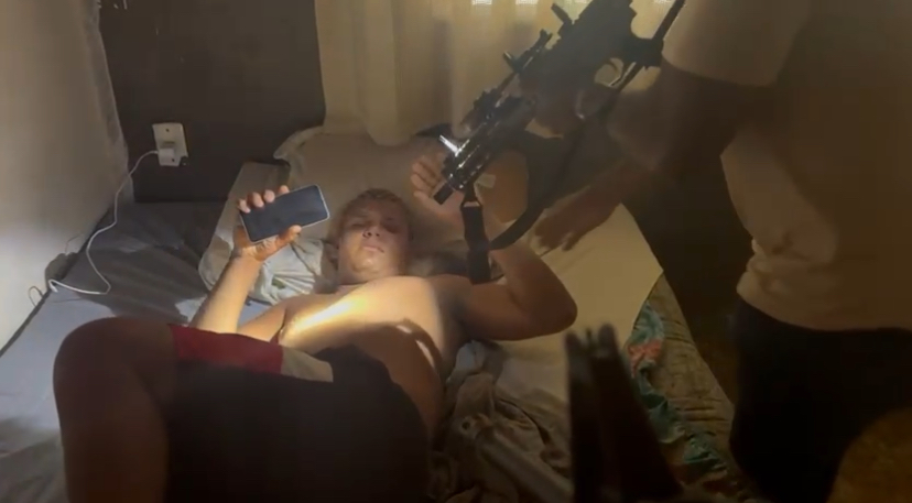 Em um vídeo obtido pela polícia, é possível ver o momento em que ele desperta com um fuzil apontado diretamente para o rosto.